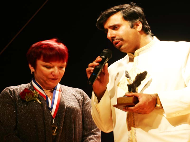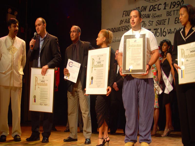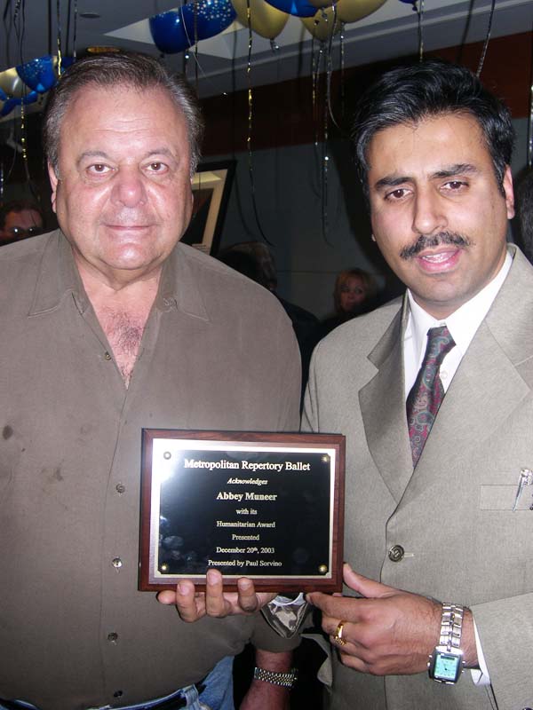 Dr.Abbey recieving Award from Paul Sorvino @ Lincoln Ctr 2003