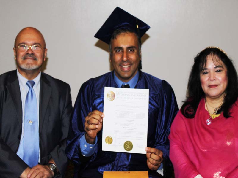 Dr.Abbey with Dr Fernadnez & Haddasa Holding up Phd Degree
